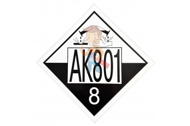 Знак опасности «Аварийная карточка 801» применяется на железнодорожном транспорте (цистернах) для маркировки опасных грузов (горючих, трудно или негорючих), которые при нагревании способны разлагаться и образовывать токсичные пары и газы. Данные вещества малотоксичны, но, пары и пыль способны вызвать раздражение, а результатом пожара может стать ожог или отравление газами.